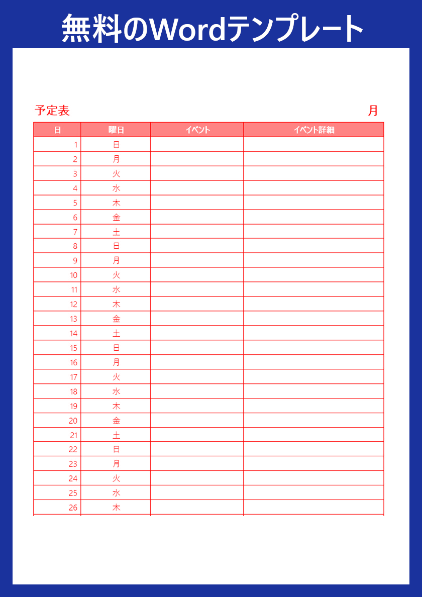 日々の予定をしっかり整理するためにも、予定表は見やすく整った形式で作成することが大切です。Wordのテンプレートを無料でダウンロードし、快適なスケジュール管理に役立ててみてください。