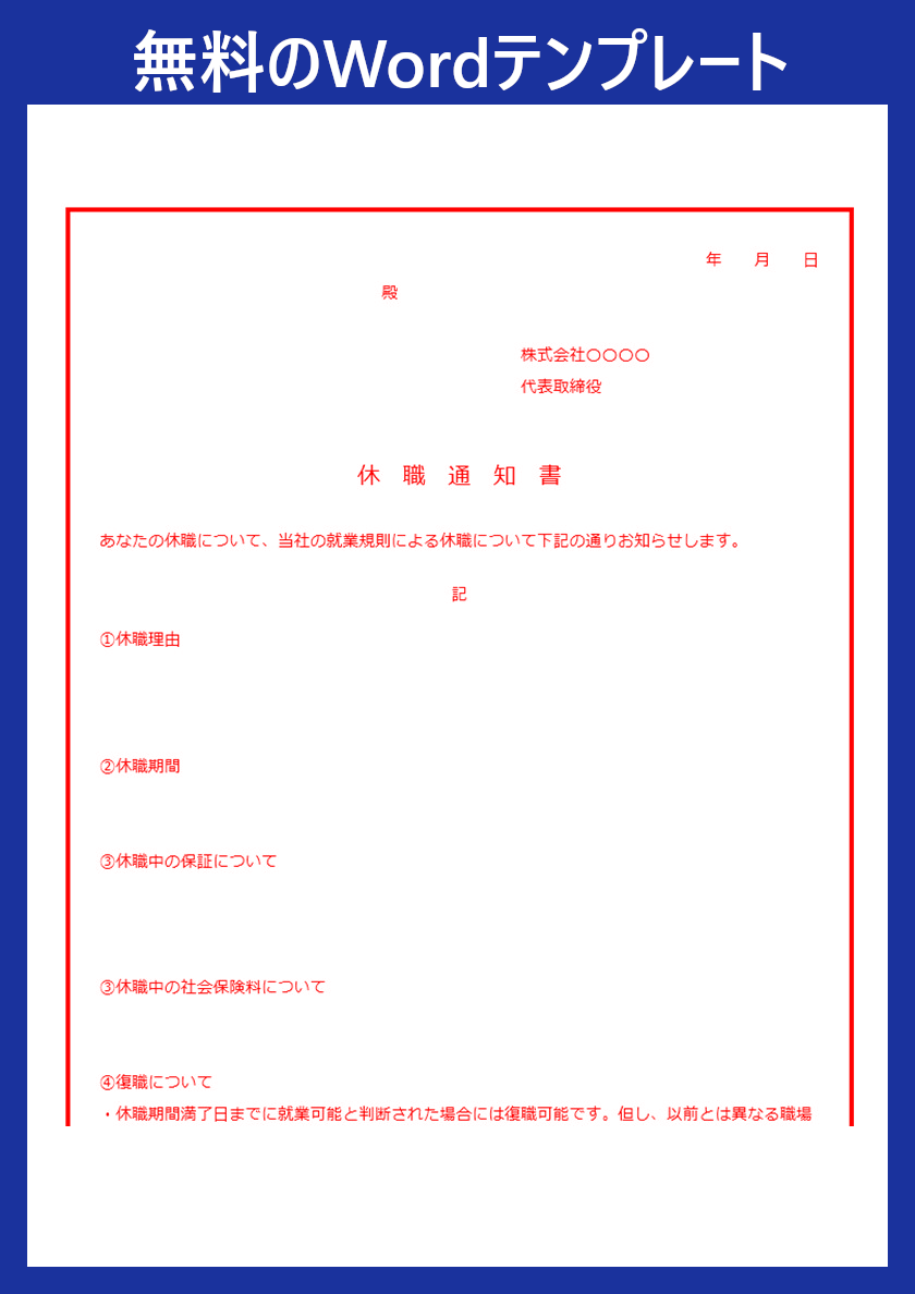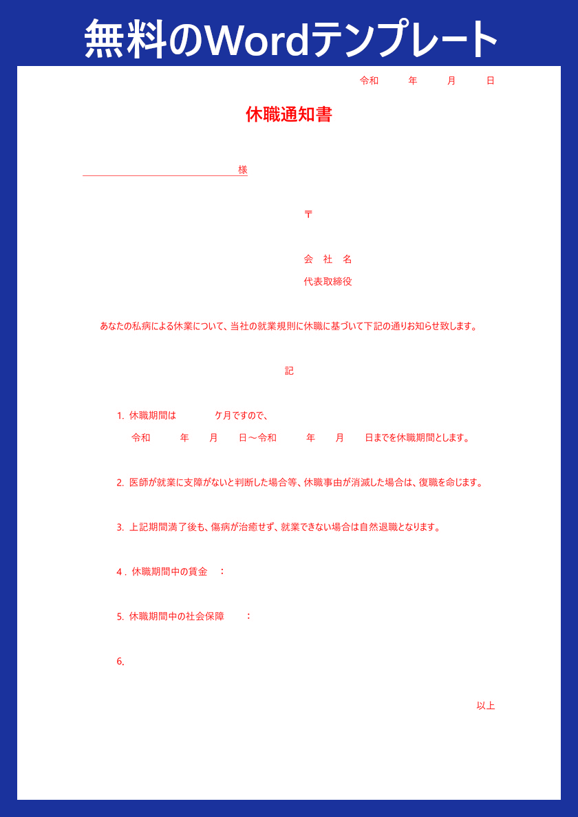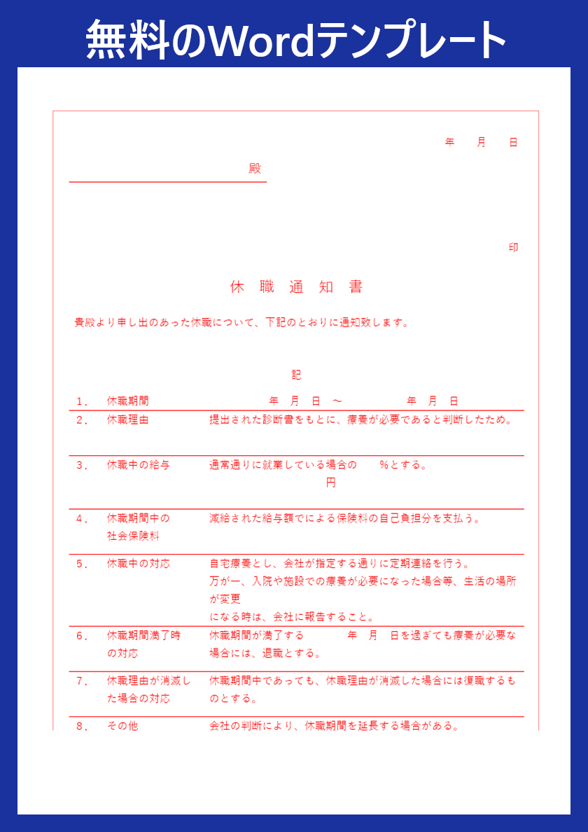 休職通知書Wordテンプレートのダウンロードは無料!見やすいフォーマット・義務対応(退職リスク対策)