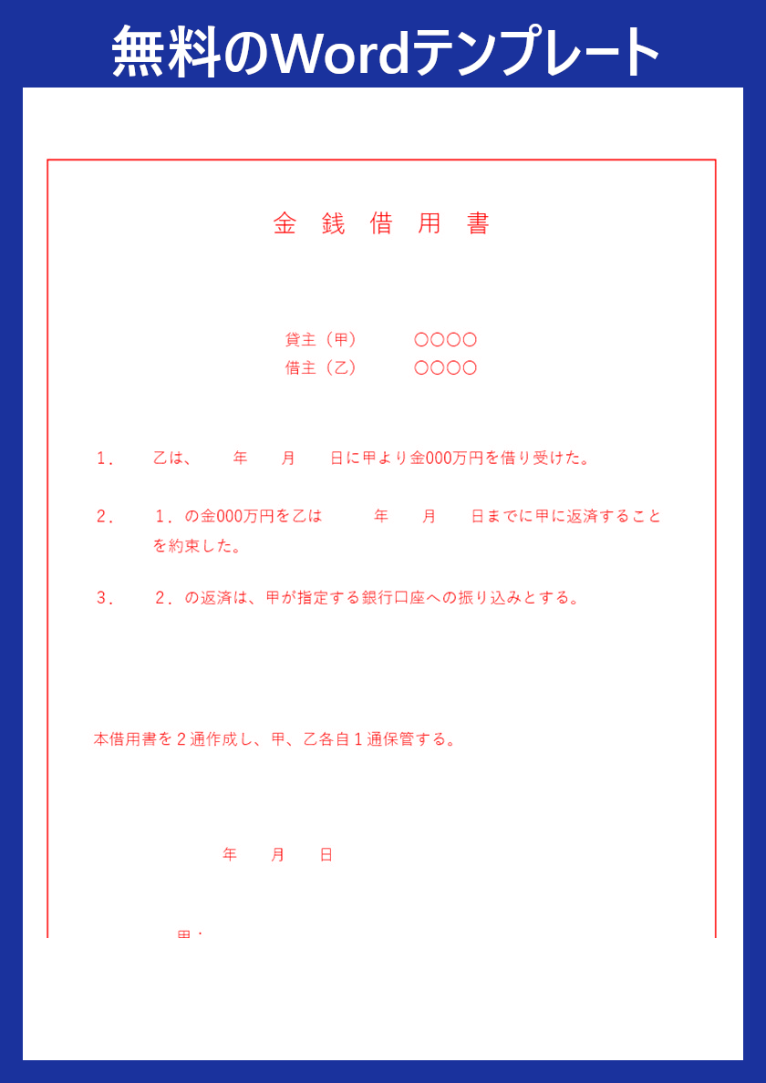 また、正式な取り交わしとして有効にするためには、内容を明確に記載することがポイントです。金額や返済期日、対象となる物などの必要事項を漏れなく記載することで、双方が安心して利用できます。