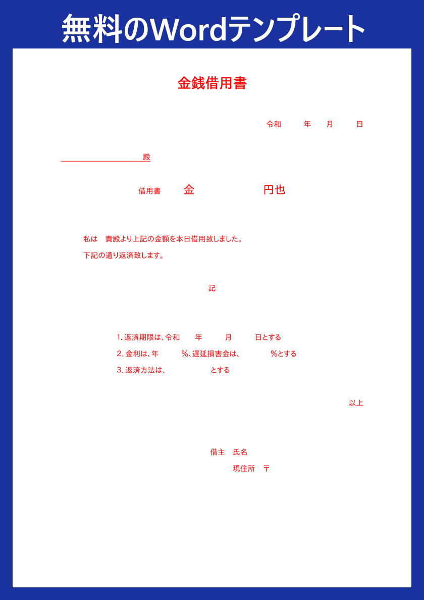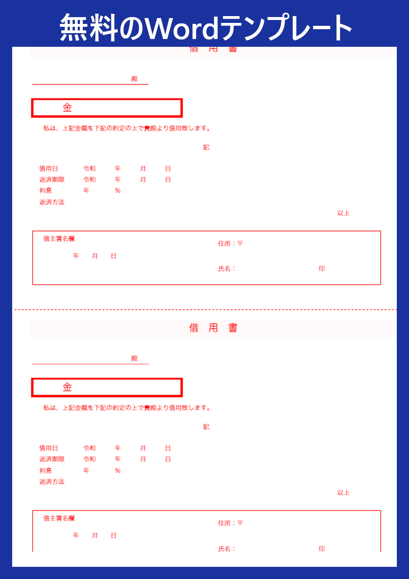 信頼関係を維持するためにも、借用書は分かりやすいフォーマットで整えることが大切です。Wordのテンプレートを無料でダウンロードし、適切な文面で安心できる書類作成に役立ててみてください。