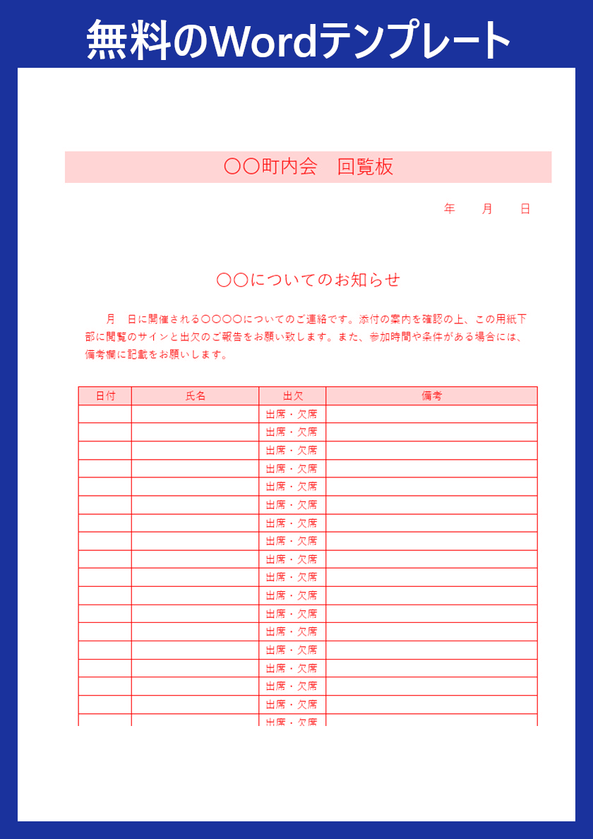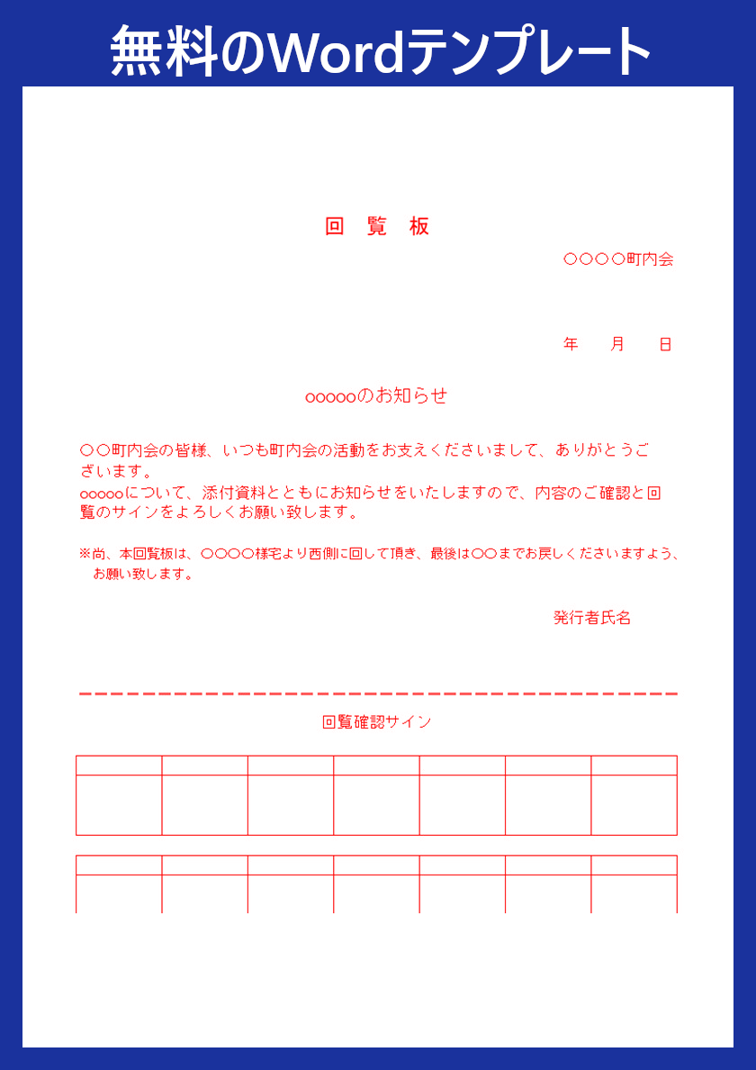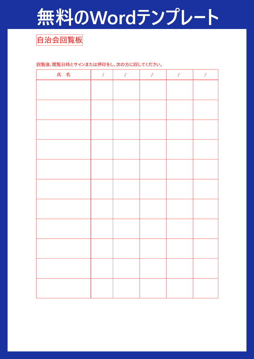 回覧板テンプレートを無料ダウンロード!Wordで使えるA4サイズ・順番管理も簡単でおすすめ
