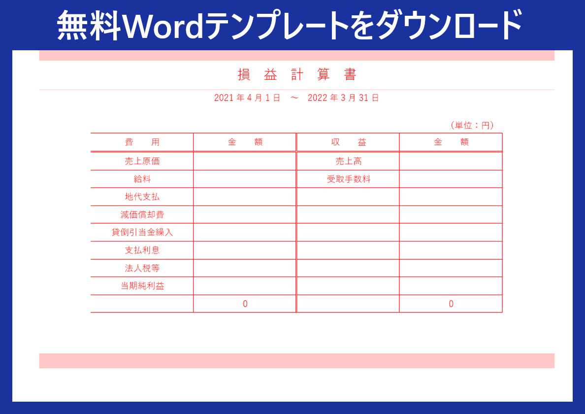 損益計算書テンプレートを無料ダウンロード!Wordでわかりやすく作れるレイアウト