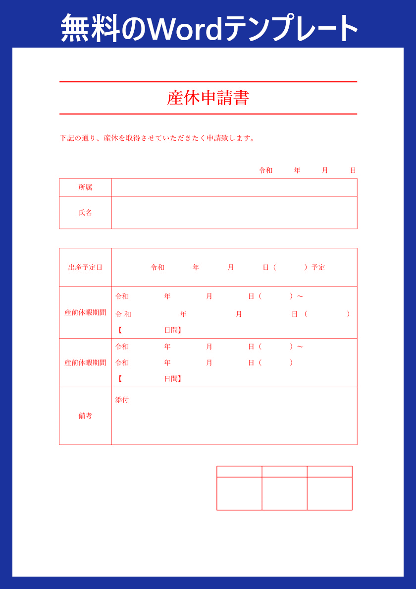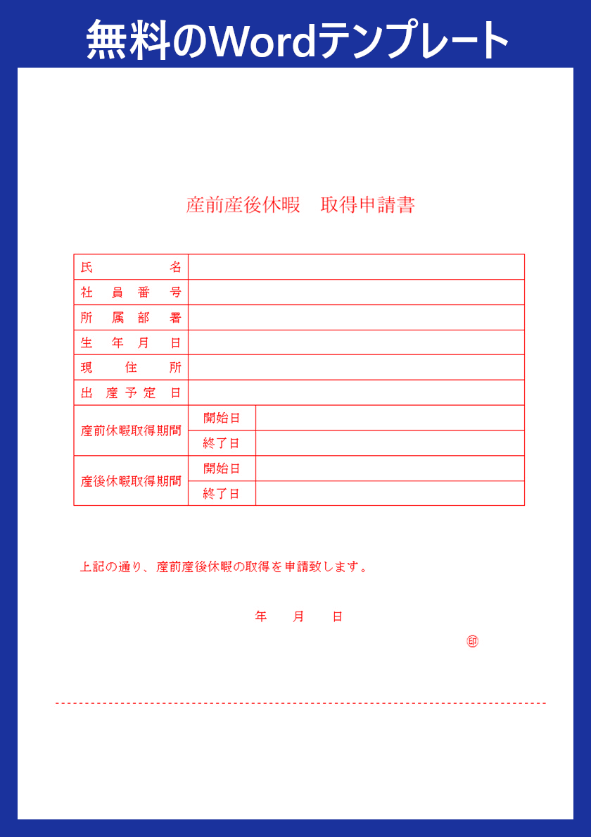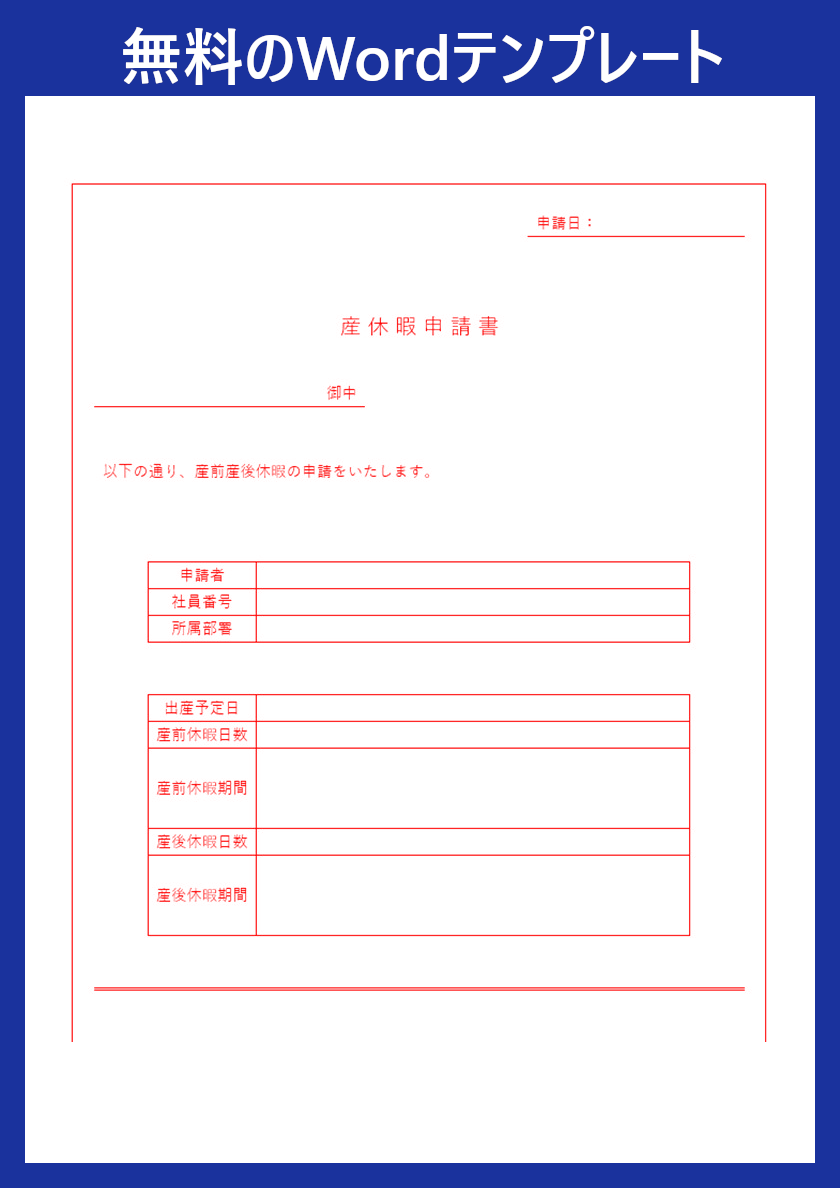産休申請書テンプレートを無料ダウンロード!Wordの社内様式・A4フォーマットに対応