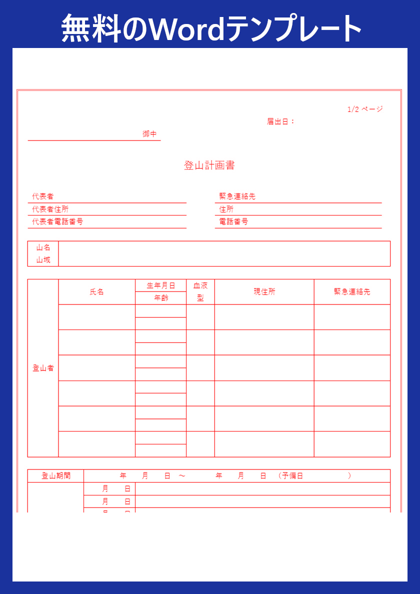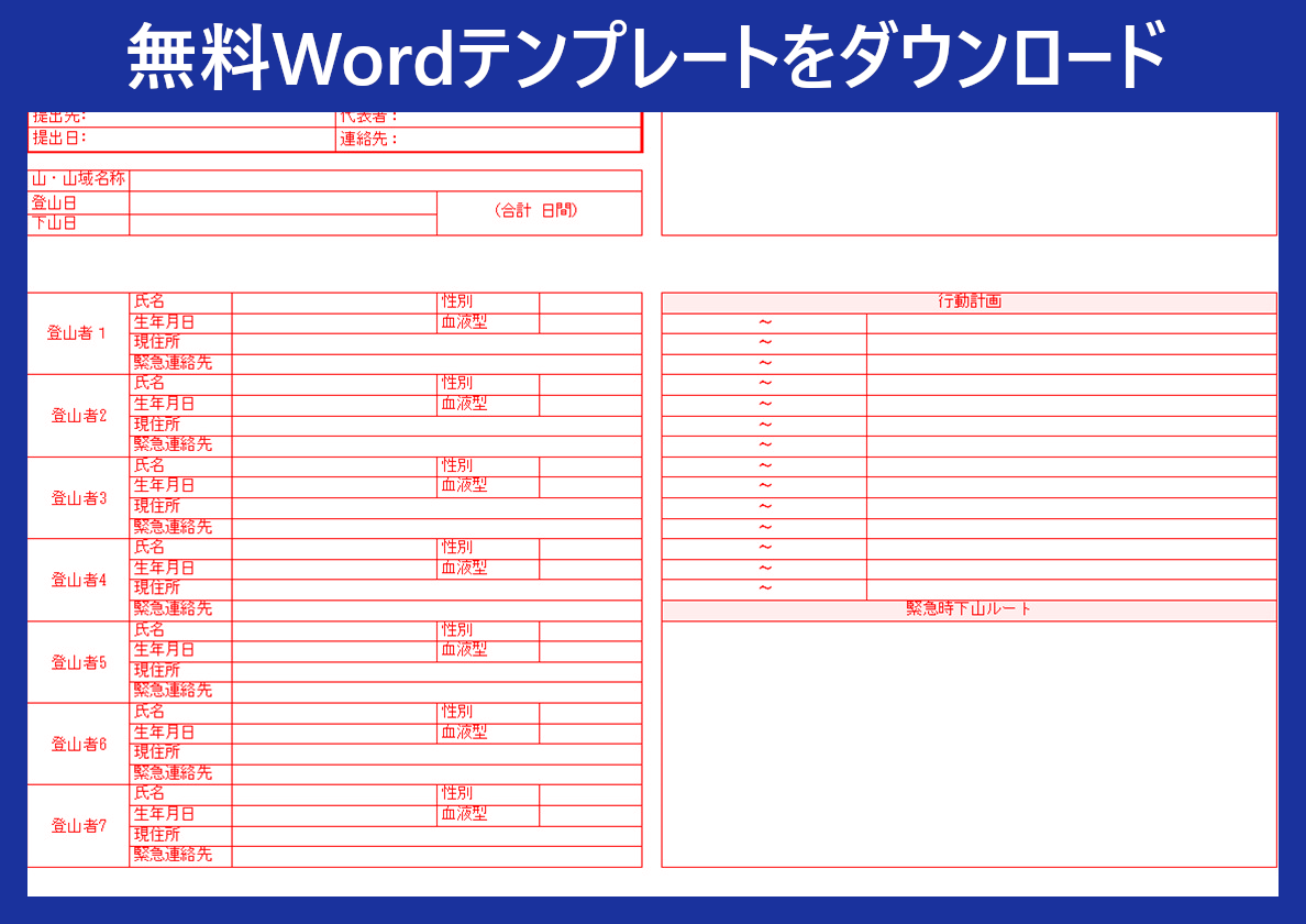 安心して登山やハイキングを楽しむためにも、登山計画書は見やすいフォーマットで整えることがポイントです。Wordのテンプレートを無料でダウンロードし、事前準備から当日の行動までしっかりと備えておきましょう。