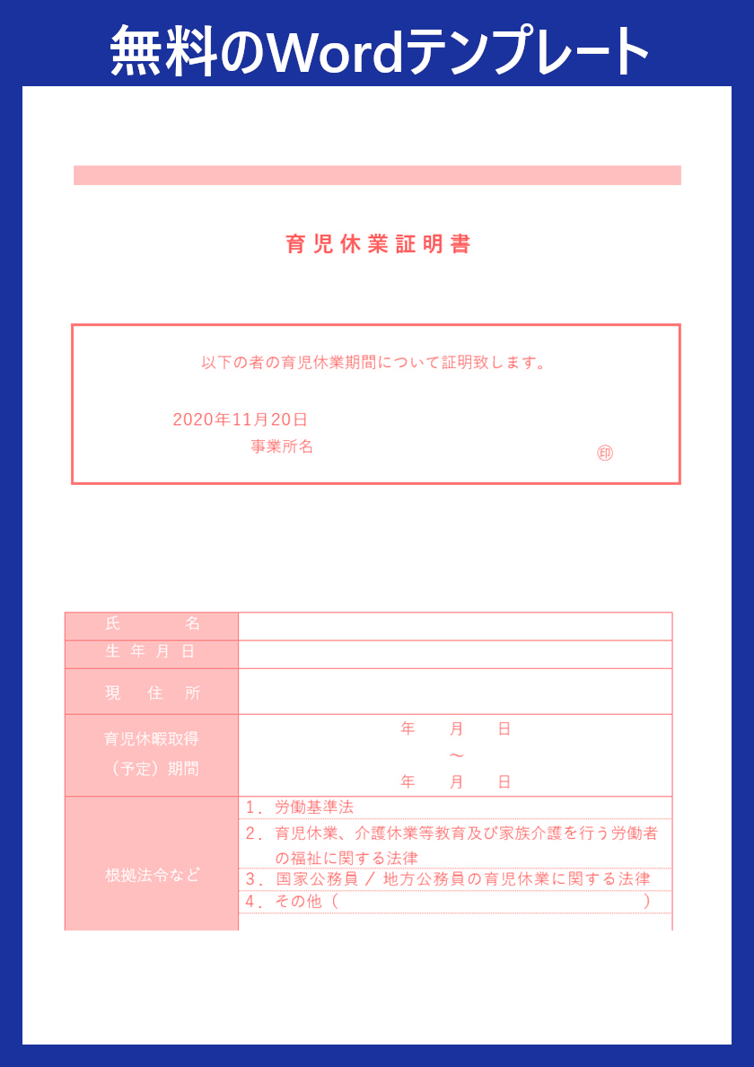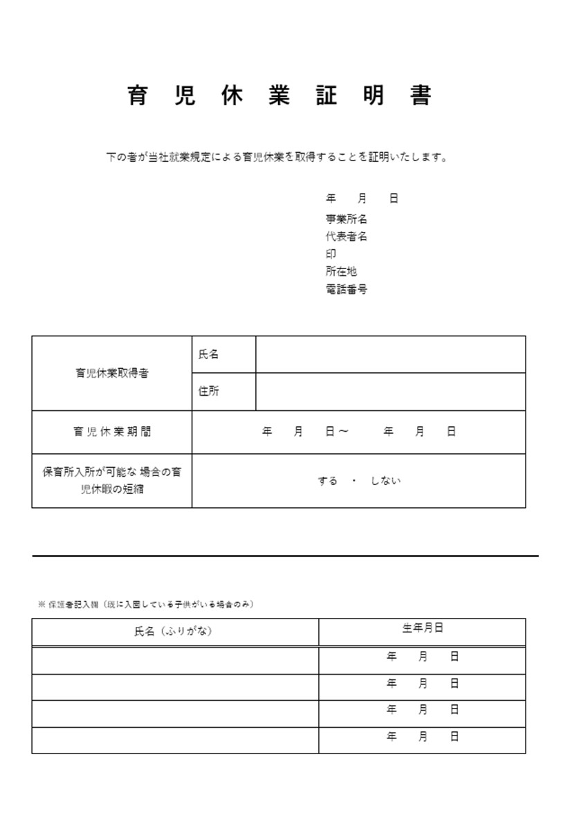 育児休業証明書テンプレート(Word)見やすい様式に編集できる雛形を無料ダウンロード!