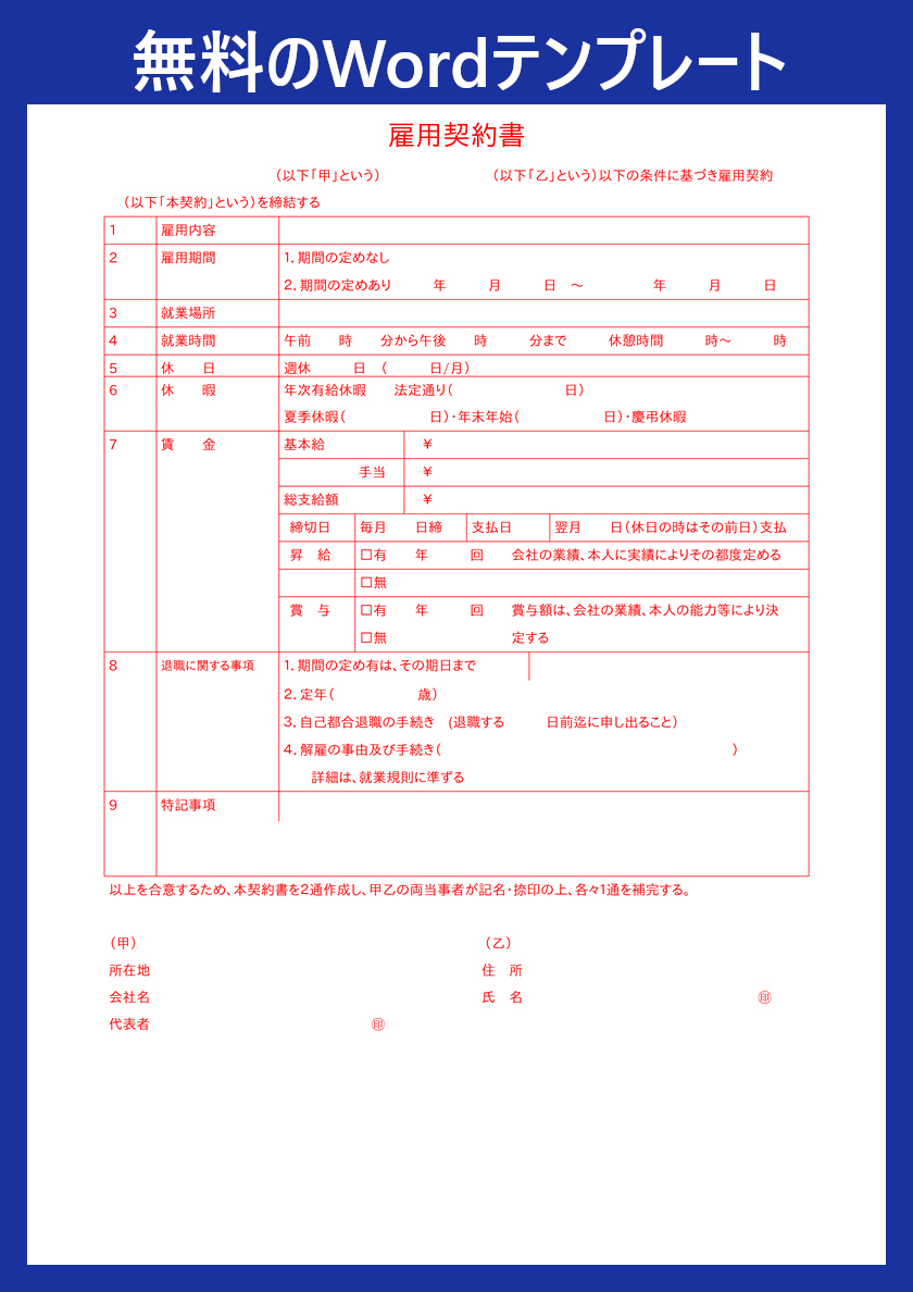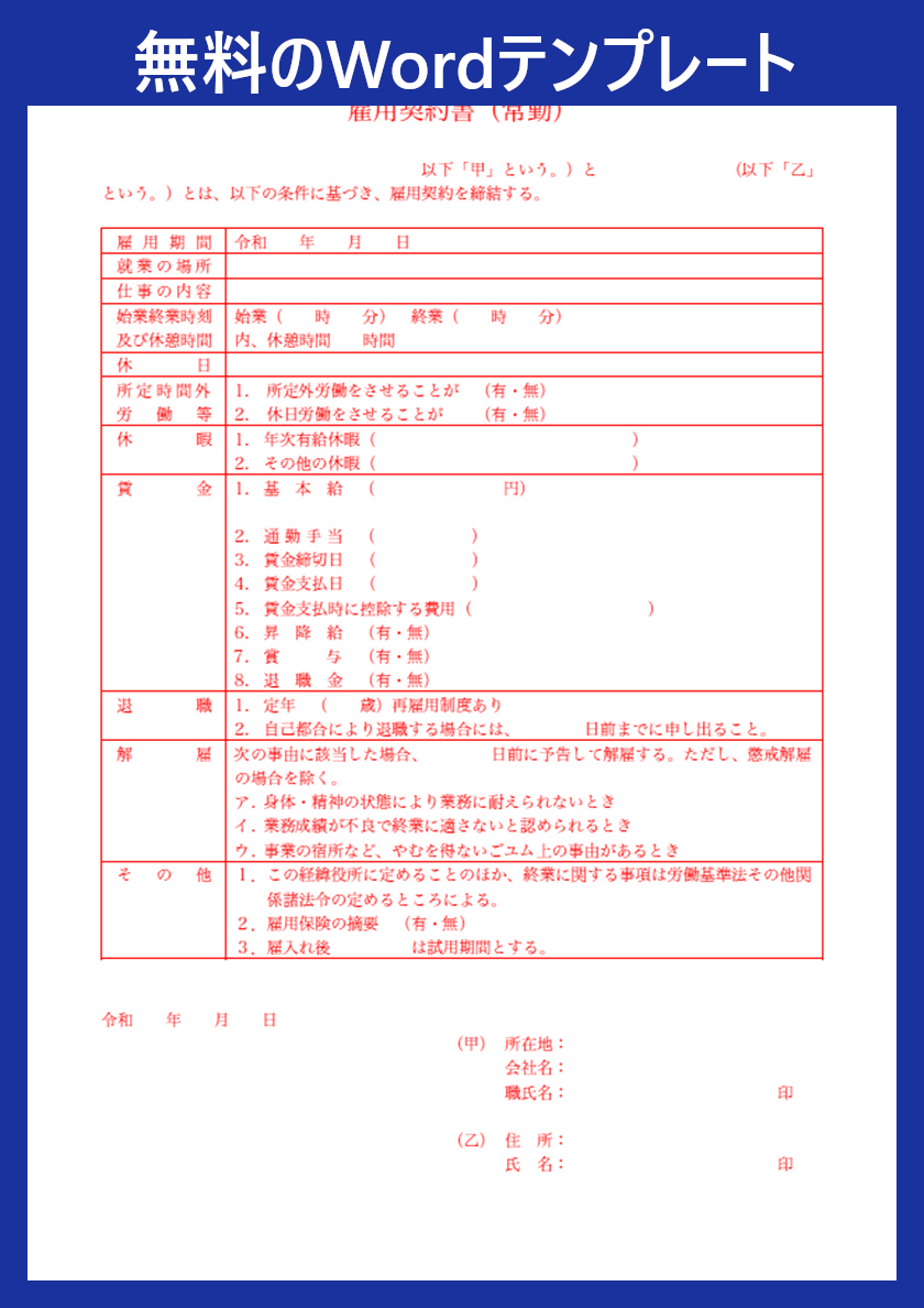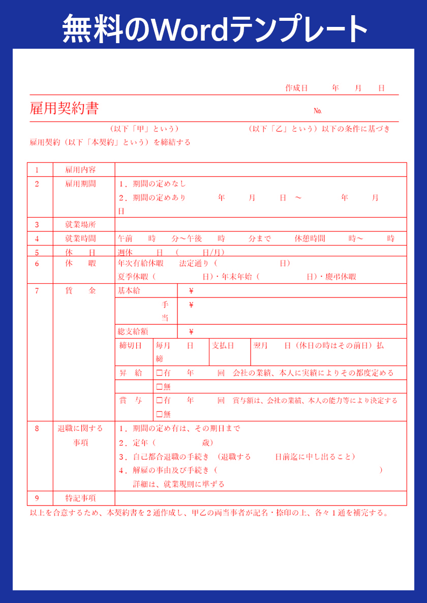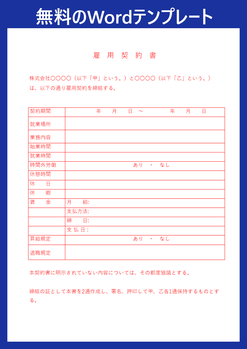 作成後はデータとして保存しておくことで、後から確認したり再利用したりすることも可能です。一から契約書を作る必要はなく、便利なWordテンプレートを無料ダウンロードすることで、すぐに契約書を作成できます。