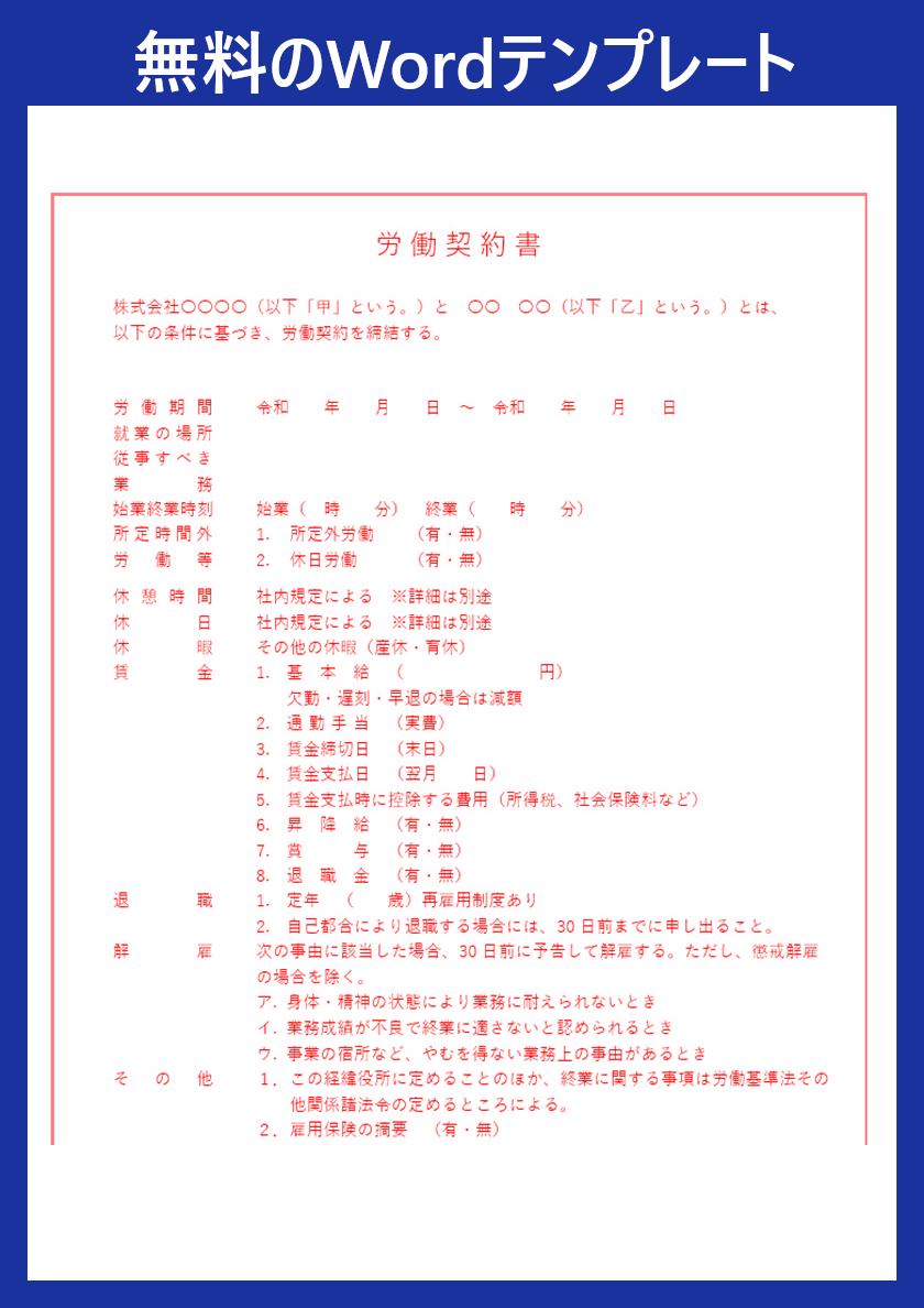 しかし、契約書を一から作成するとなると、書き方や記載する項目、レイアウトの位置などに悩むことも多いものです。そこでおすすめなのが、すぐに使えるWordの契約書テンプレートです。