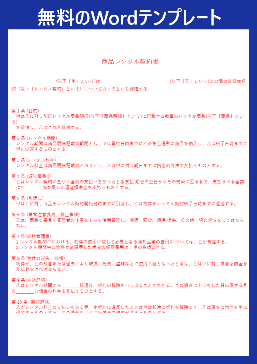 しかし、契約書を一から作成するとなると、どのような内容を記載すればよいのか迷ってしまうこともあります。そこでおすすめなのが、すぐに使えるWordのレンタル契約書テンプレートです。