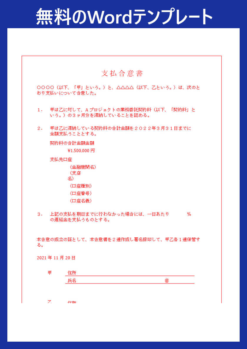 支払条件をきちんと文書化しておきたい方は、ぜひ便利な支払合意書テンプレートを活用してみてください。
